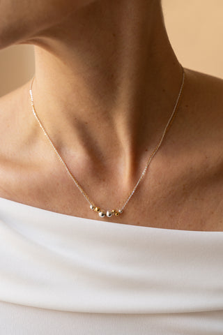 Náhrdelník BUBBLES je ztělesněním elegance a romantiky. Spojuje dva jemné řetízky s několika drobnými „bublinkami“, které jsou volně uspořádány a jemně v pohybu. Tento design přináší jedinečný a osobitý vzhled, který podtrhuje vaši individuálnost.