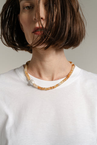 Citrín je kámen světla a vitality. Podporuje tvořivost, sebevědomí a vnitřní sílu – a když se spojí s perlovým akcentem, vznikne harmonie mezi teplem a jemností, mezi září a tichem.