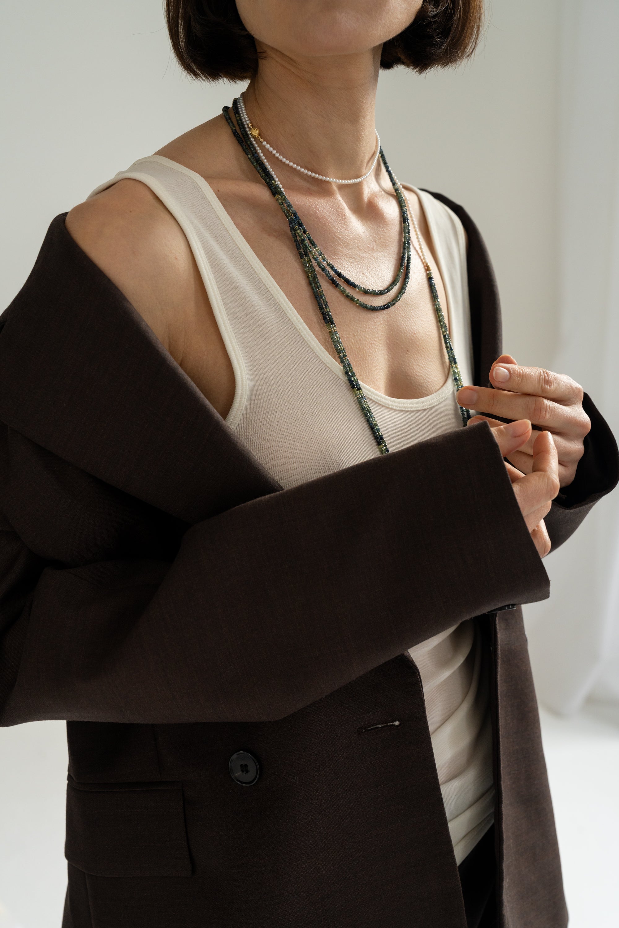 Dvě řady safírů a perly. Náhrdelník, který nabízí více možností nošení. Je jen na vás, co si vyberete.