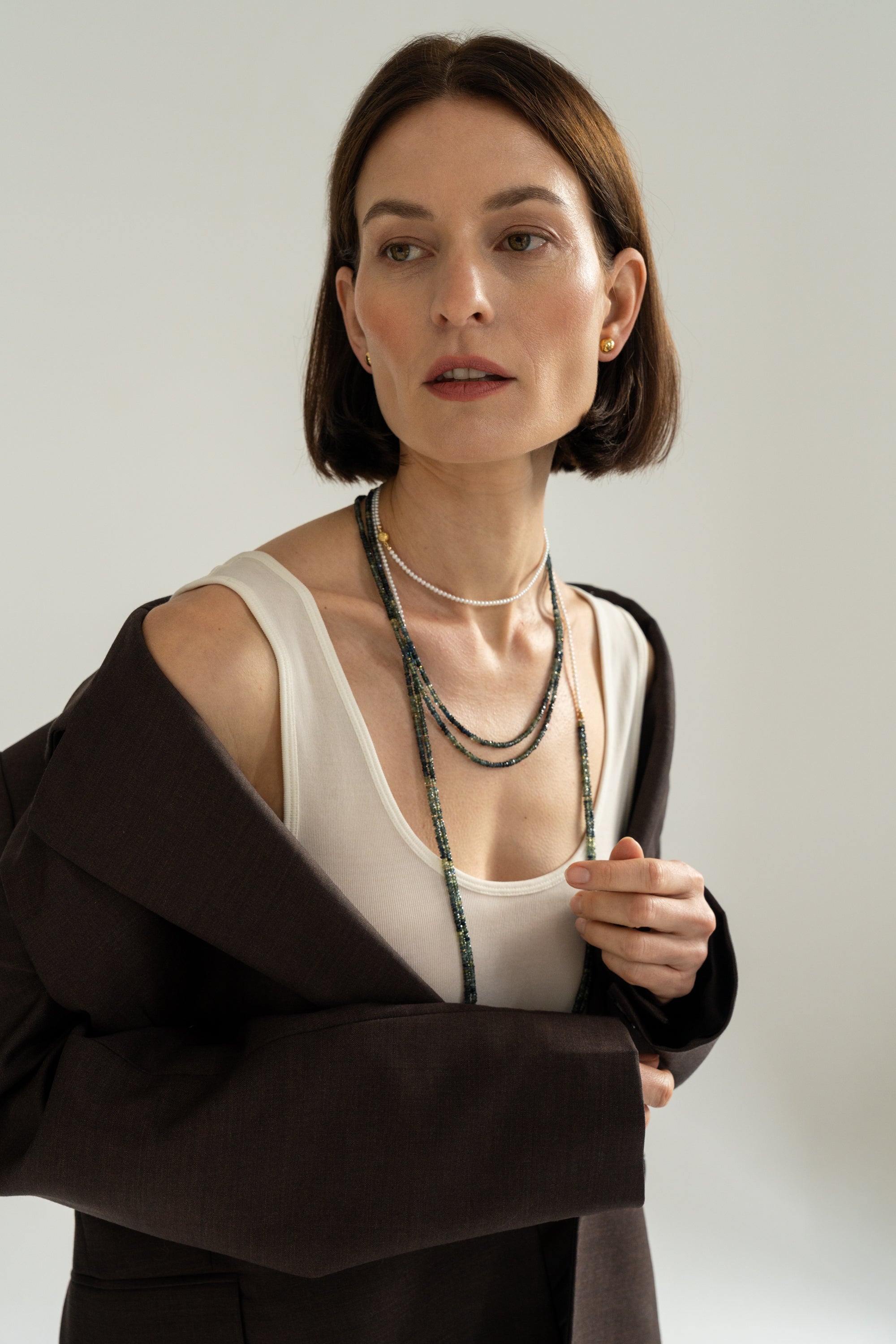 Splendour Illusoire – dlouhý náhrdelník z perel a safírů, který nese atmosféru noblesy 20. let. Iluze, která se v každém pohybu znovu rodí.
