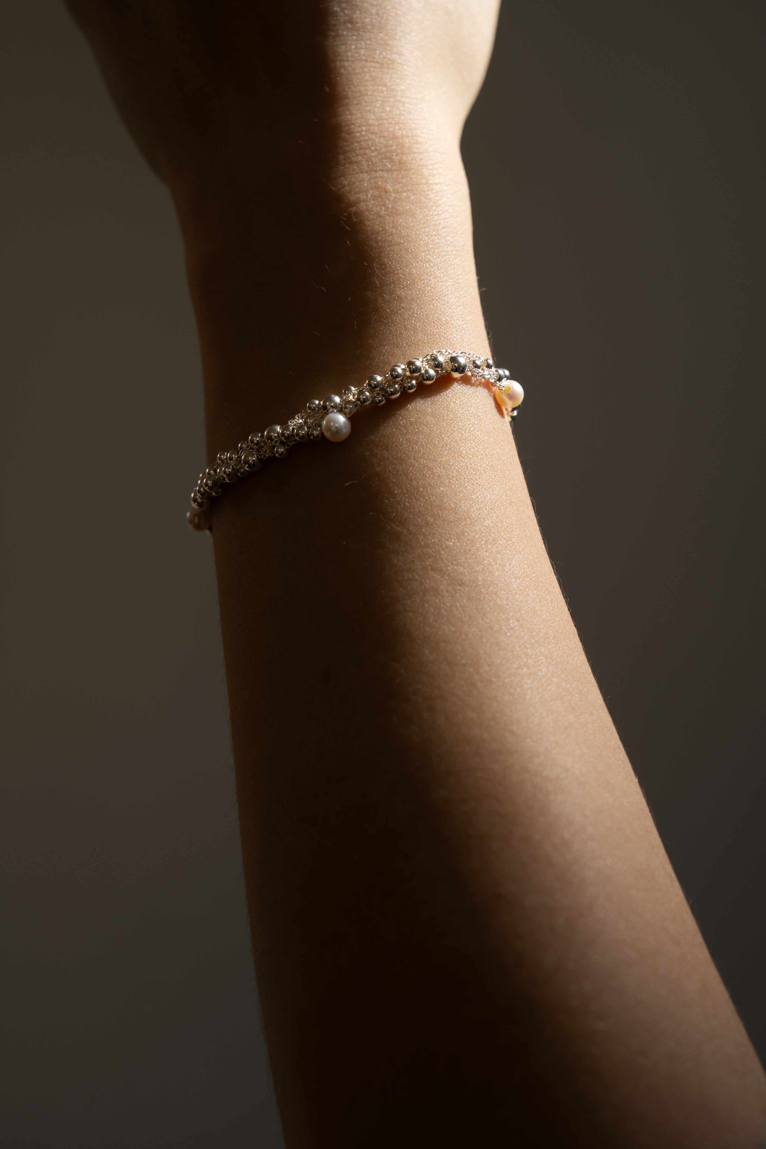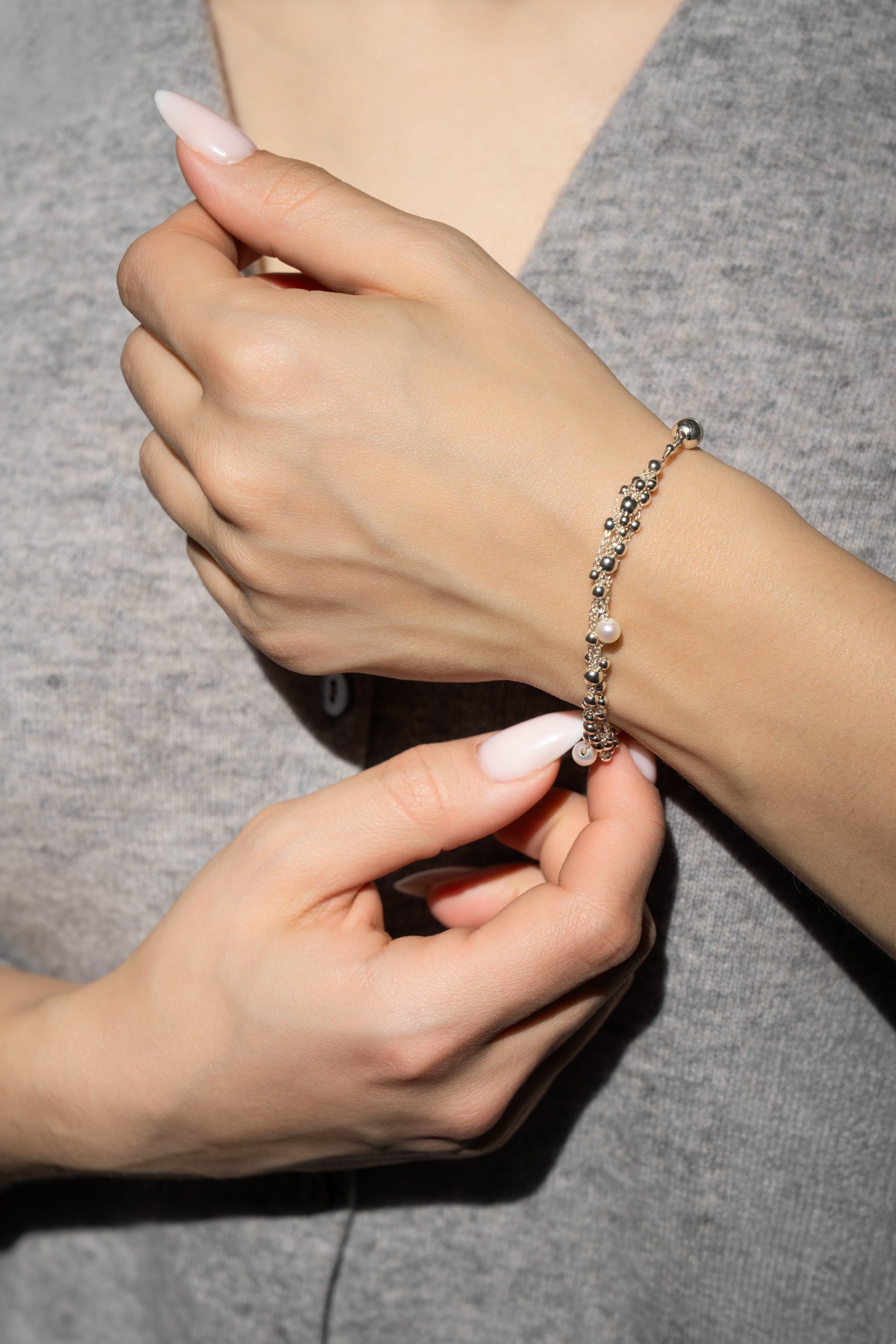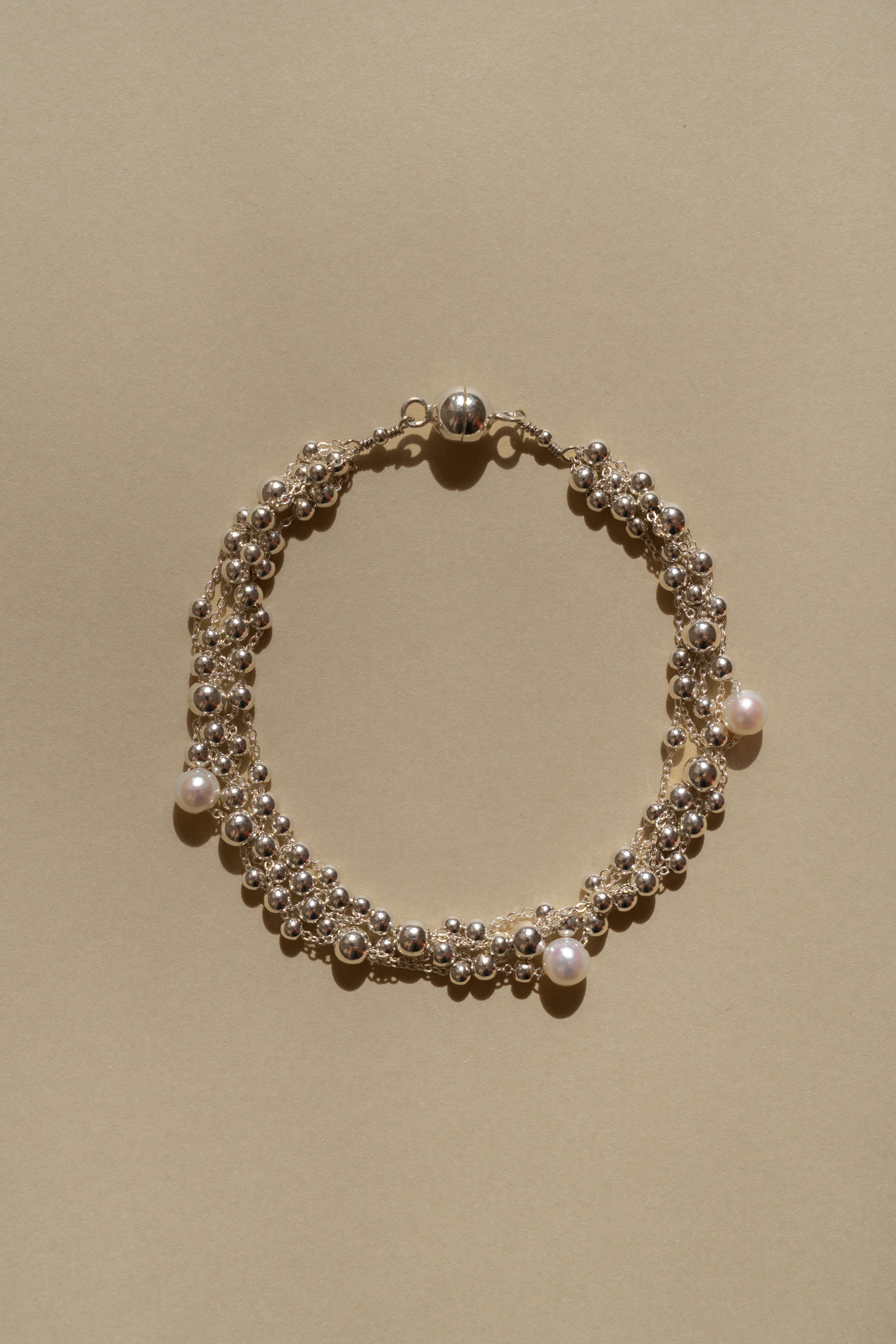 Náramek z kolekce Riverr ze sterlingového stříbra proložený sladkovodními perlami s magnetickým zapínáním.