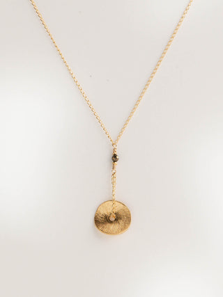 Circle collection with a pendant evoking the sun along with beautiful pyrites.