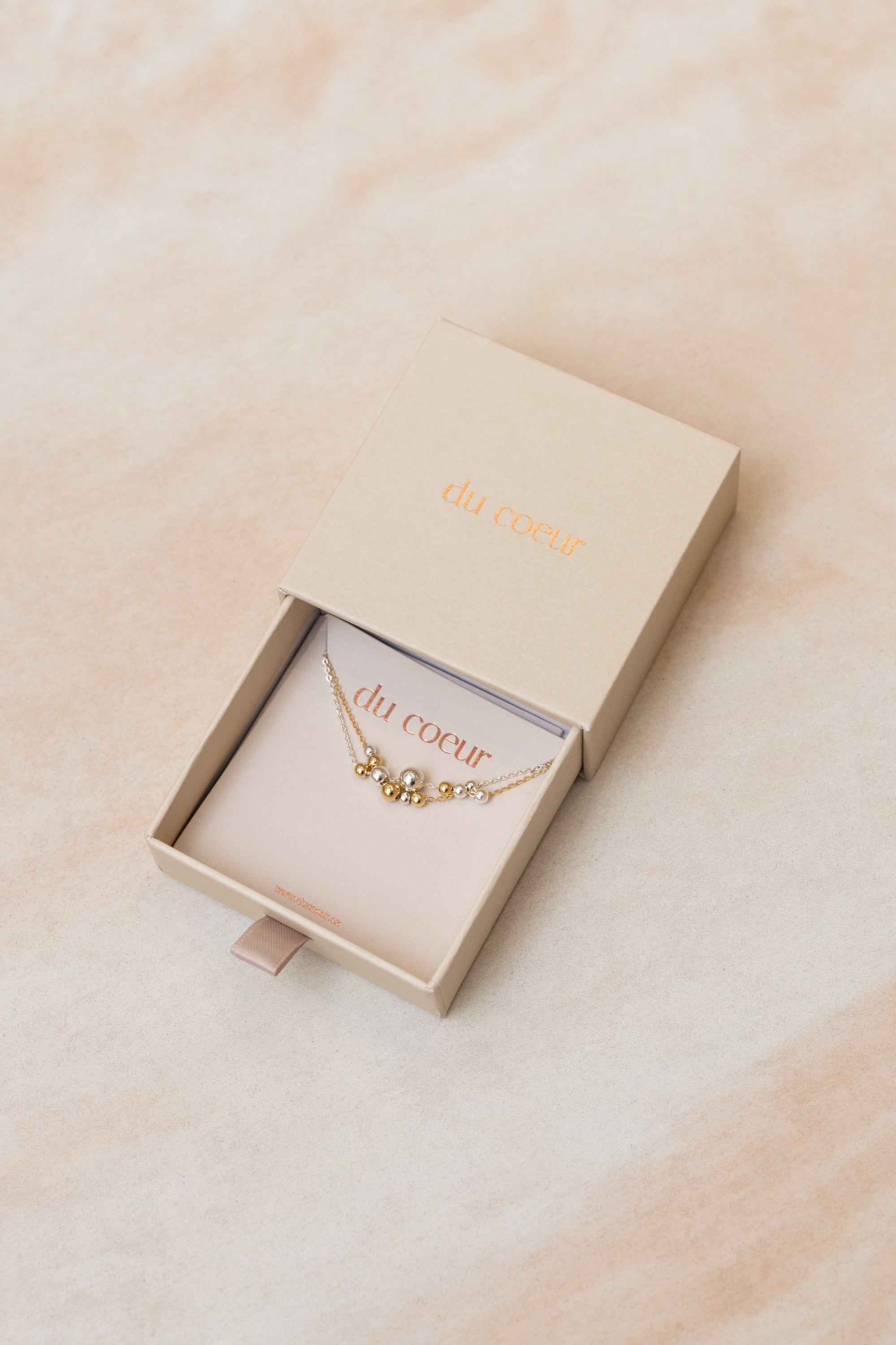 BUBBLES is a delicate necklace consisting of two chains and a cluster of several fine bubbles. The bubbles have no fixed position on the chain, so the shape of the necklace is quite organic, it just depends on how you move. You'll probably have to do a lot of mirror checks because you'll be so in love with this necklace :).